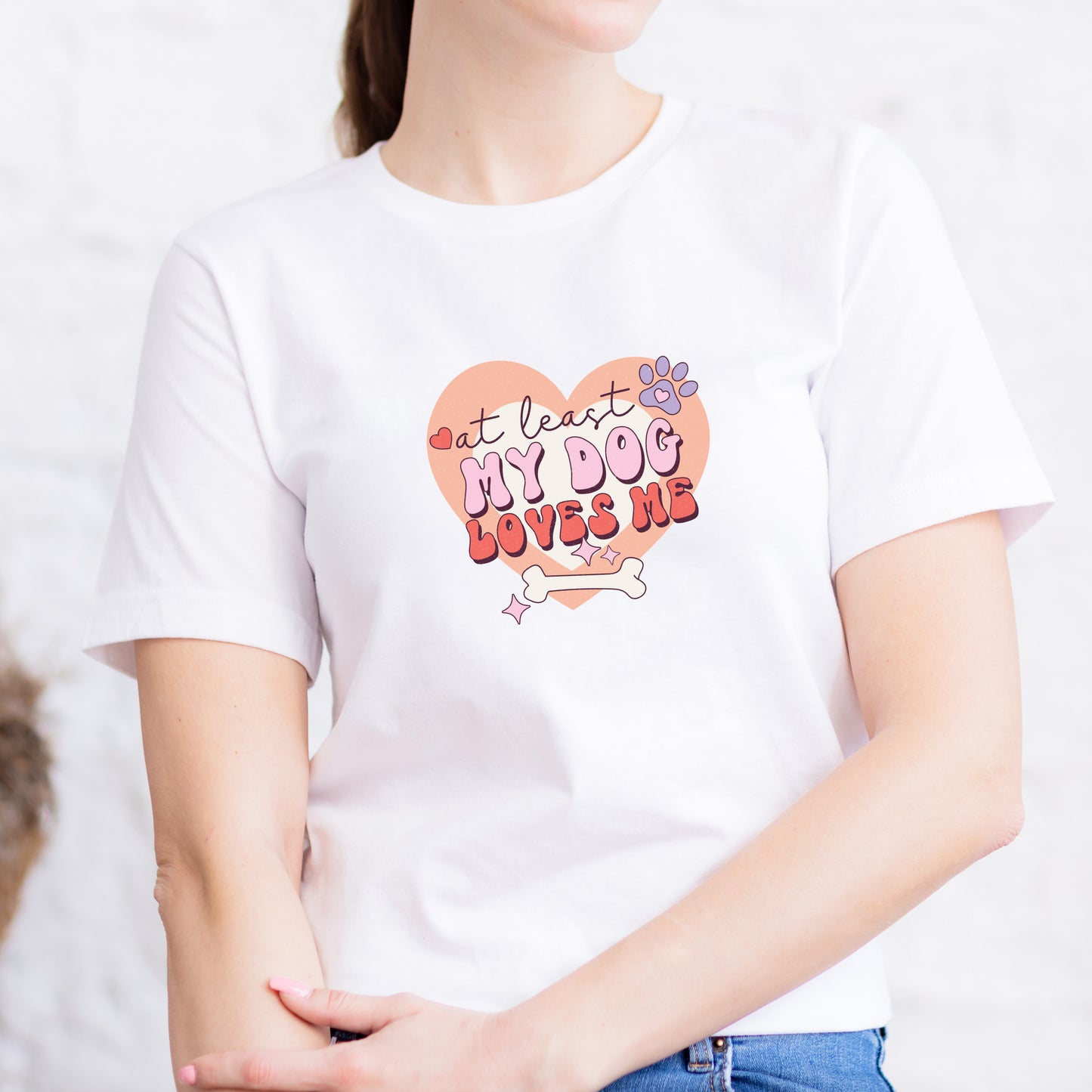 This is perfect any time of the year, but we love the idea for it for Valentine's Day. This bright modern graphic Tee for those who have a dog who knows that their dog loves them.