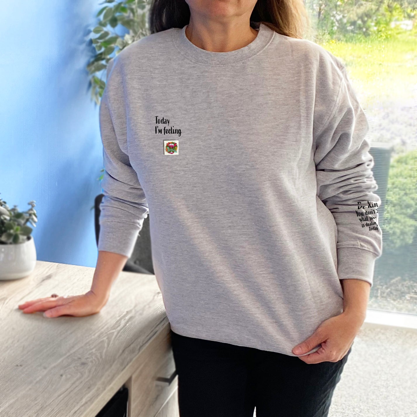 This fun sweatshirt is gorgeous and soft, making it super comfortable to wear. It also reminds people to Be Kind as you don't know what people are dealing with behind their smiles that day. To let people know the sweatshirt has 'Today I'm Feeling' printed onto the breast and comes with 6 interchangeable acrylic pin badges. You can let the world know how you are feeling! Do you feel awesome? Feel like Tequila? Feel like you need a hug? Choose 6 of our acrylic pin badges to accompany your sweater for which will closest match your moods. You can always add to this later on and buy more pins separately to expand your feeling range!