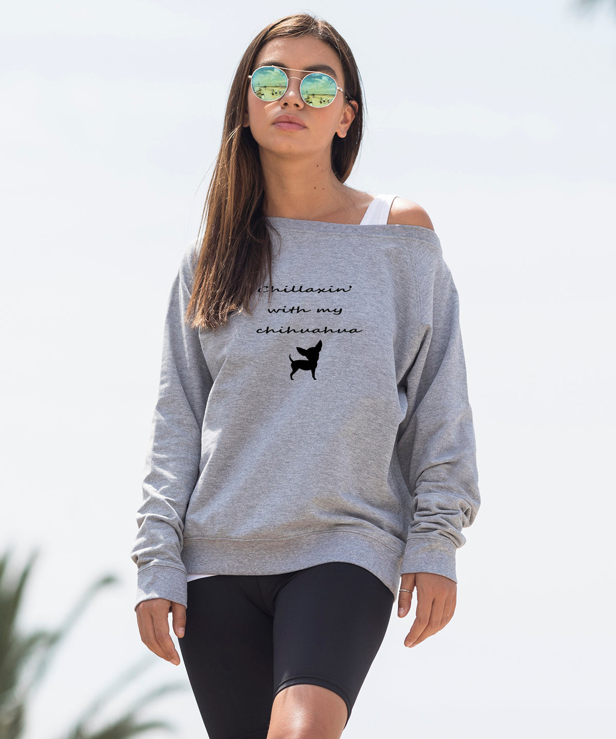 This stylish Ladies Slouch Fit Sweatshirt with an adorable Chihuahua design is perfect for dog owners and dog lovers alike. This comfortable and fashionable top is a must-have addition to your wardrobe, showcasing your love for dogs in a trendy way.Crafted with a slouchy and relaxed fit, this sweatshirt provides the ultimate comfort for your laid-back days. The soft and cosy fabric makes it perfect for lounging around the house, running errands, or catching up with friends. Embrace your playful side with the witty dog design slogan that adds a touch of humour to your outfit.