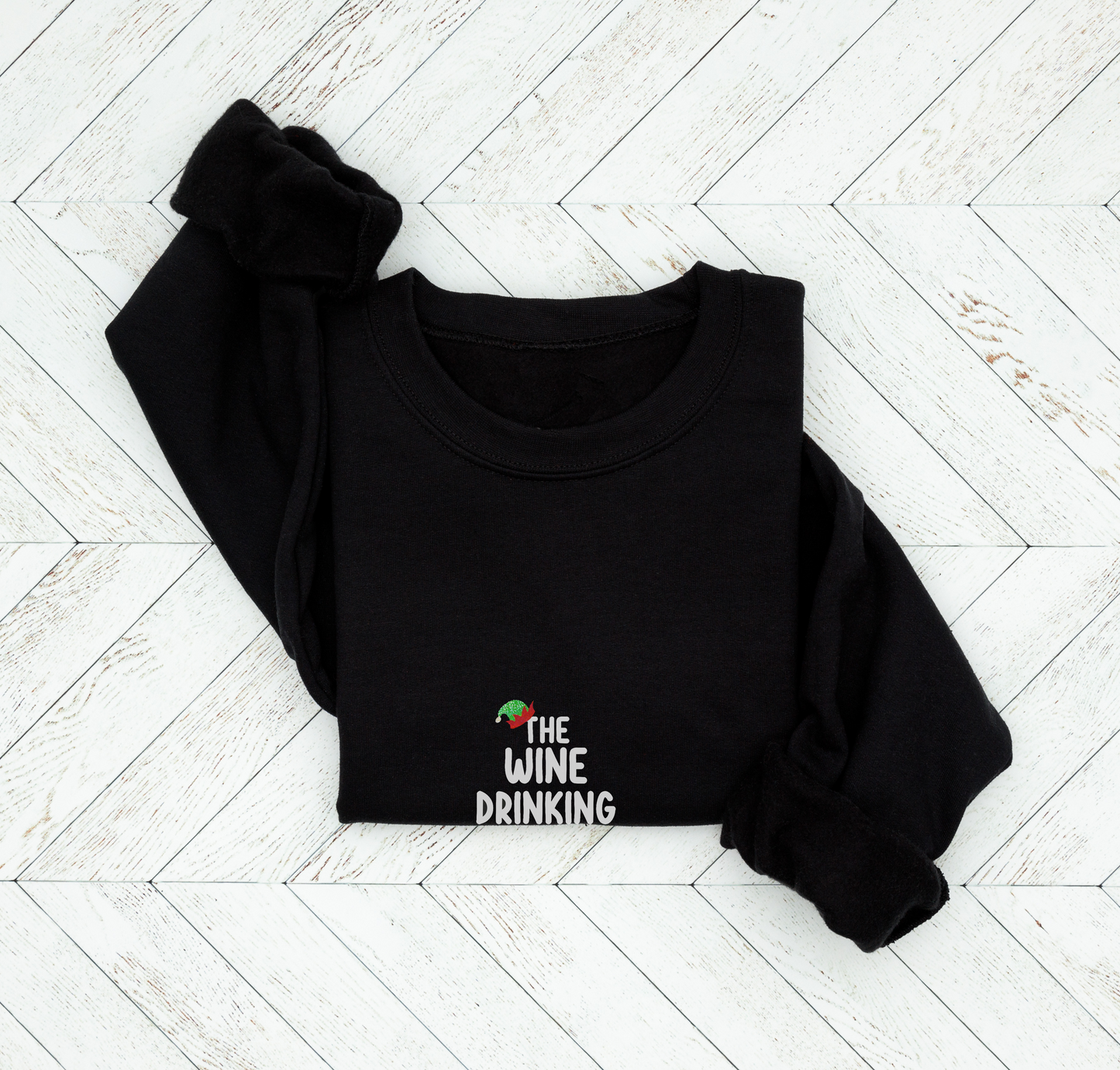 Add some extra Christmas cheer to your winter attire with our "Wine-Drinking Elf" Christmas sweatshirt. Order now to experience the warmth and uniqueness of a handmade creation. Be ready for Christmas Jumper Day and all your festive celebrations with this sparkling touch of holiday fun.
