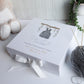 Our Personalised White Luxury Baby Gift Box is the Ultimate Keepsake for a gorgeous new arrival.This luxury new baby gift box showcases a unique hand-drawn feel, adding a touch of warmth and personalisation to your heartfelt message. Our Personalised Baby luxury gift box features a delightful hand-drawn illustration that exudes love and tenderness. The intricate details and whimsical style of the drawing capture the magic of this joyous occasion. Each stroke of the artist's hand brings a sense of authenticity and uniqueness to the card, making it truly one-of-a-kind.