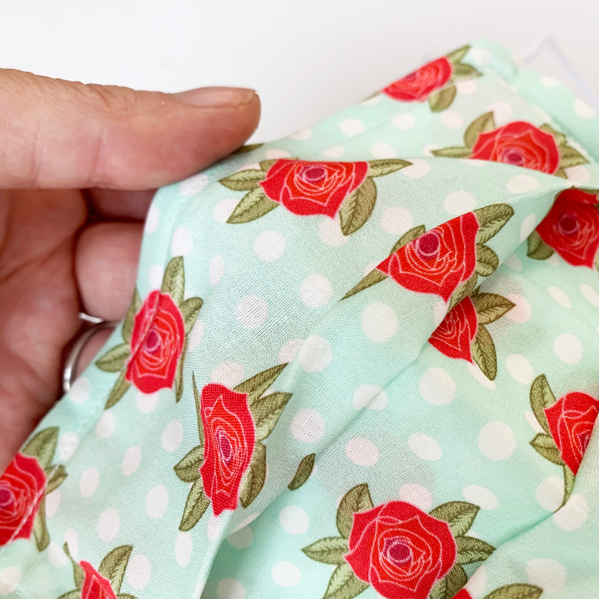 The face mask is a double layer made with two sides of 100% cotton material. We have included in the design a soft wire in the seam at the top of the mask so that this can be fitted to your face for closer fitting and an area at the bottom to add a filter within the mask if you would like to. A filter is not provided but you can insert a piece of folded kitchen towel which will just give that extra added protection.