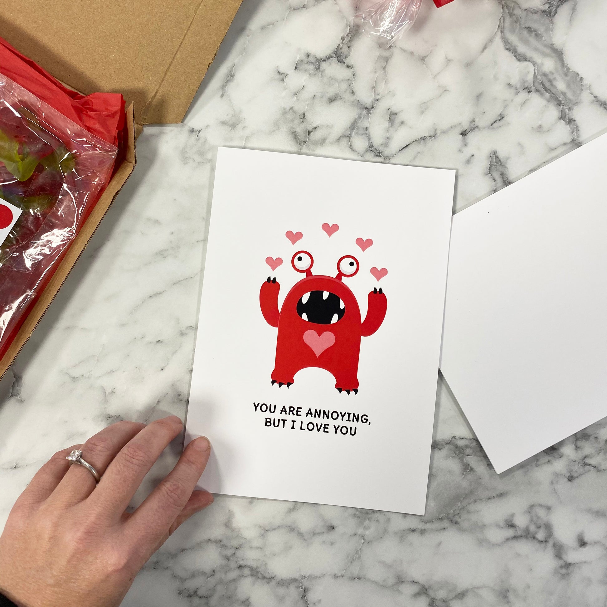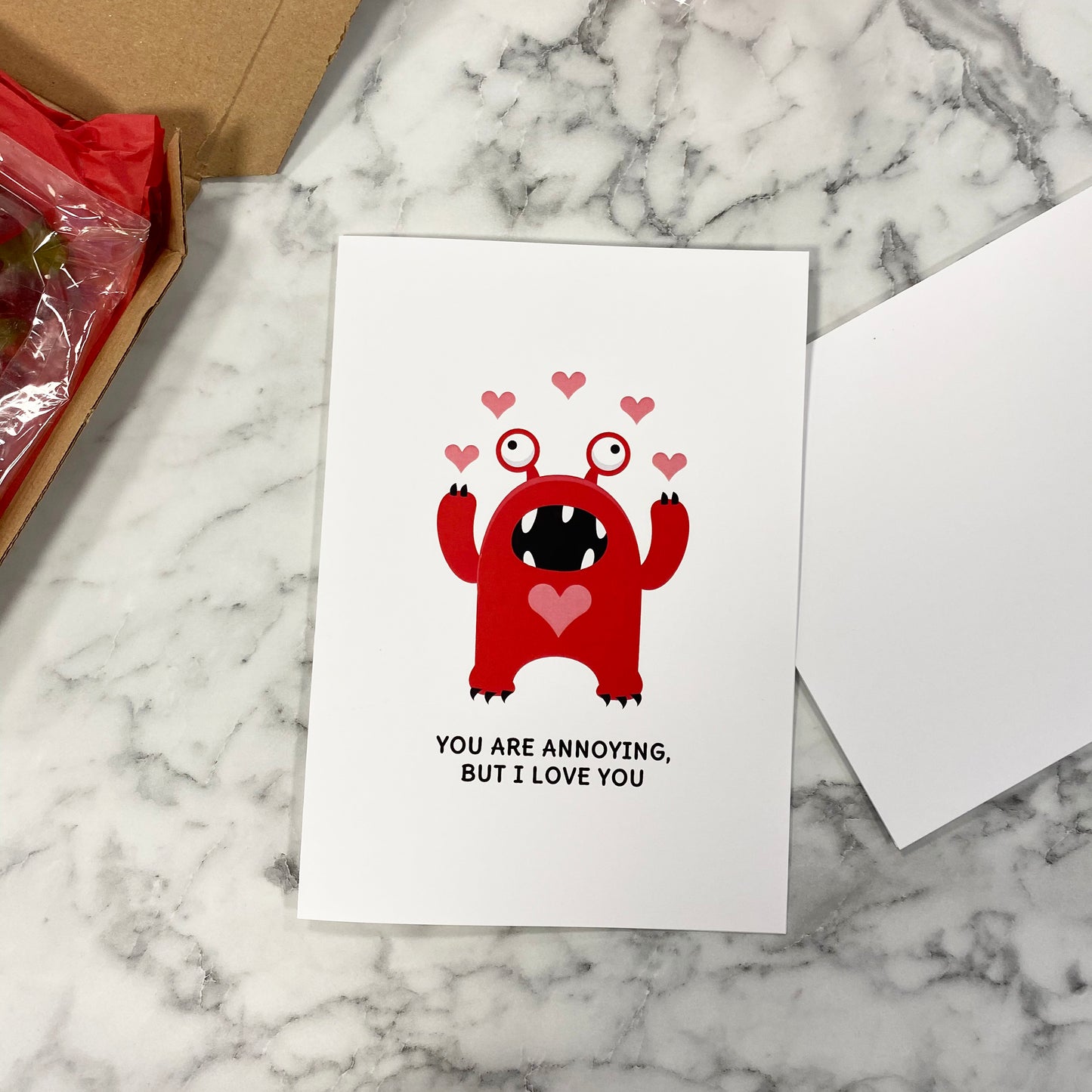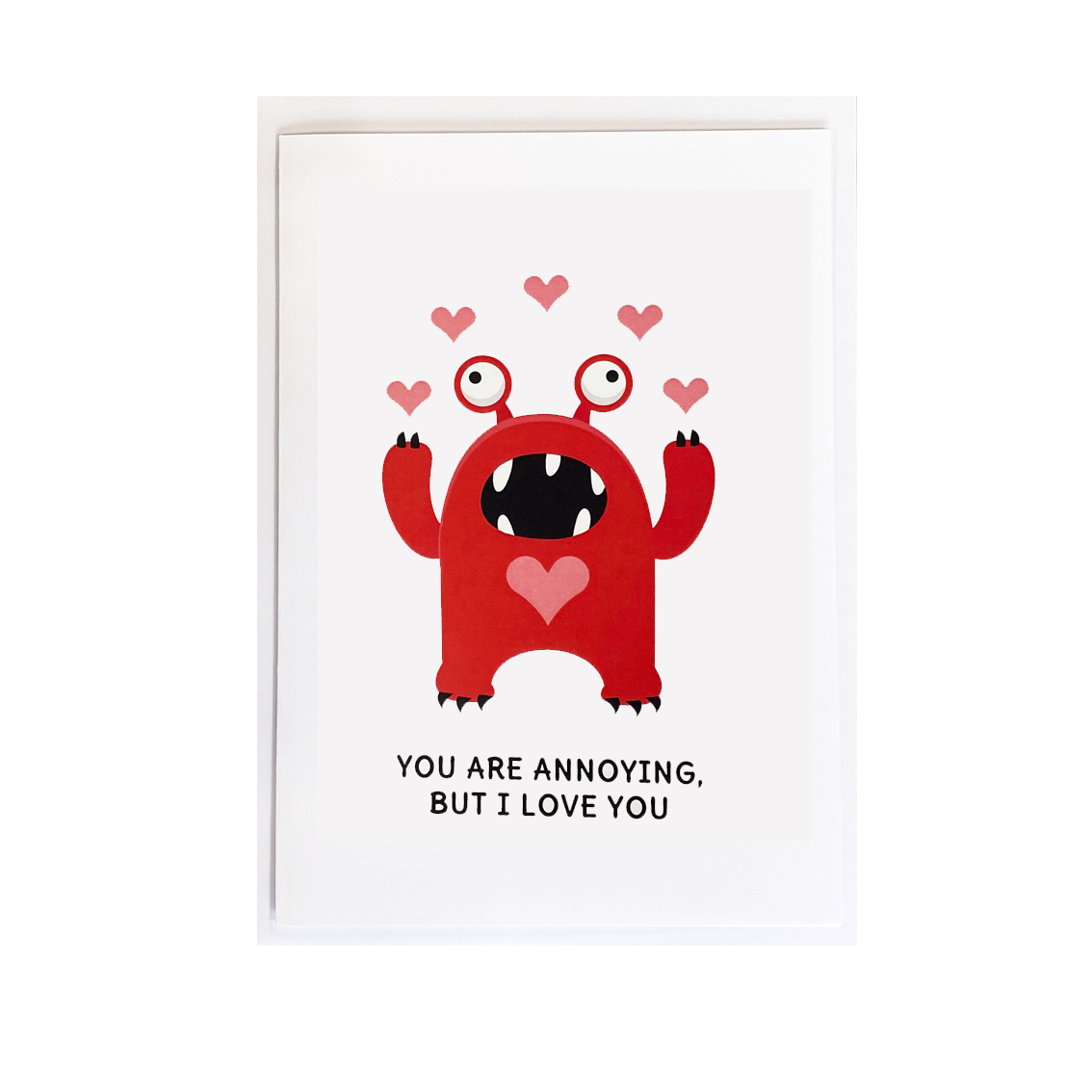 This funny Valentine's Day Monster card with the message "You are annoying but I love you" is perfect for those who want a less serious card to send this year.