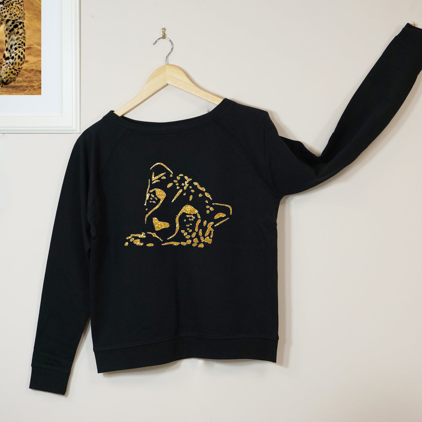 Made from cotton, with wonderful leopard design comes in sizes S(10), M(12) and L(14). Although, please note, it is a slouch fit but the sizes are not too baggy, if you prefer a baggy fit, we recommend choosing a size up.