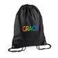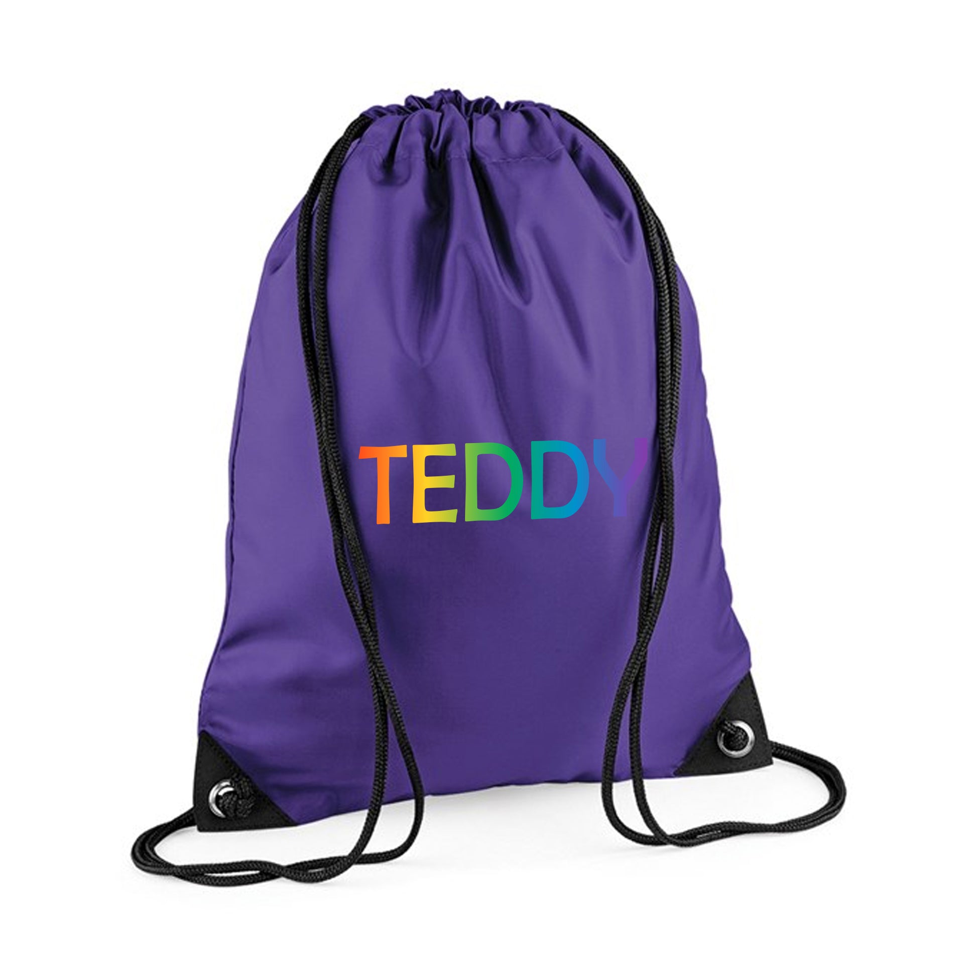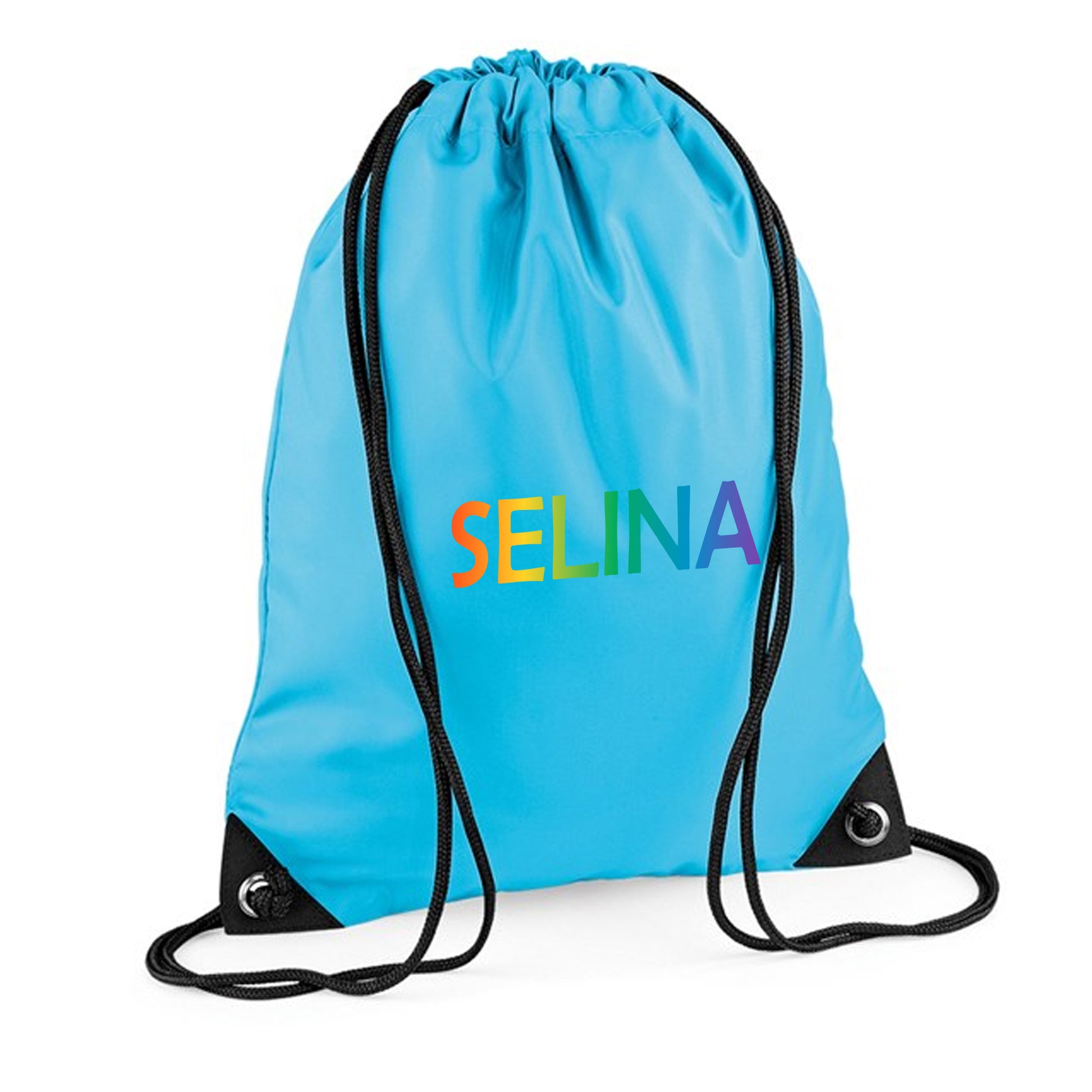 Make this gym bag truly yours by adding your name to the design. The name will be professionally printed in a rainbow vinyl onto the front, adding a touch of exclusivity and making it easy for you to identify your bag in a bustling PE class.