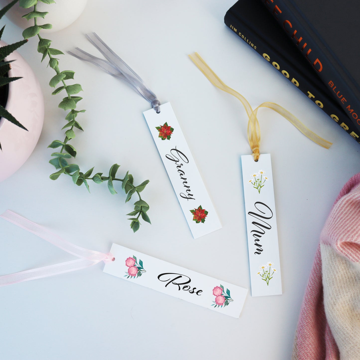 This is a lovely bookmark gift for someone who loves to read as a birthday gift, Mother's Day gift or just as a little I love you gift. This beautiful acrylic bookmark is cut and printed in our workshop. Each bookmark is then finished off with a ribbon, we will choose the colour to complement the colour of the birth flower you choose, You can personalise the bookmark by adding a name and choosing the month of birth. The different flowers we use for the months are shown in the images.