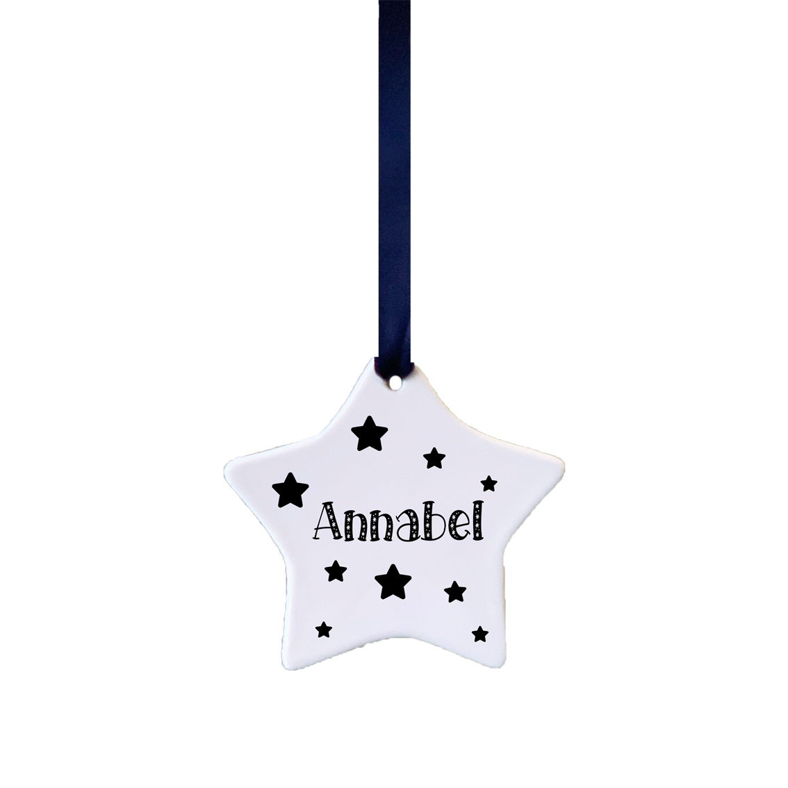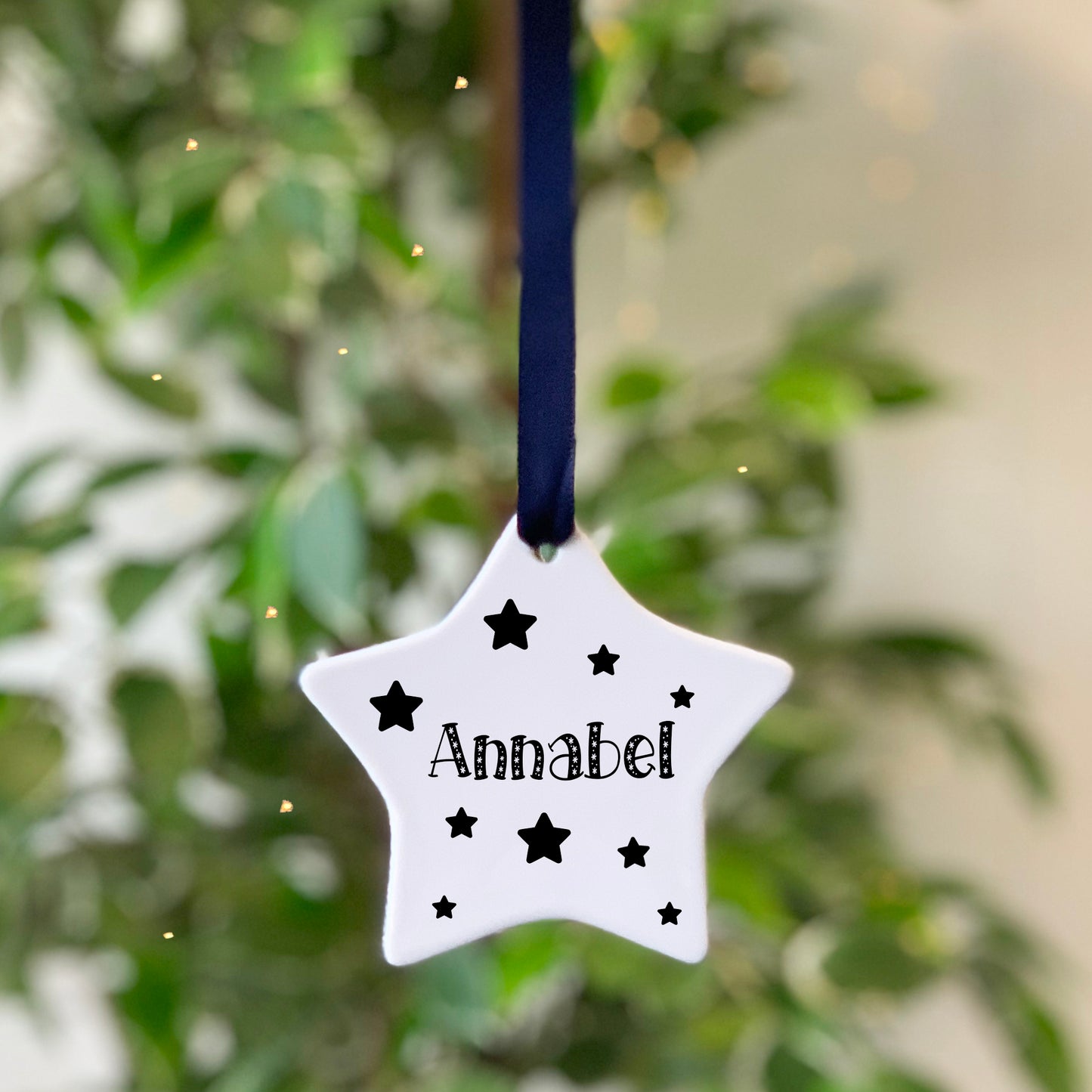 This beautiful modern personalised Christmas bauble can be personalised with any name. These personalised baubles make wonderful stocking fillers, secret santa gifts, gifts for friends and colleagues and are keepsakes that can be hung on the tree year after year.