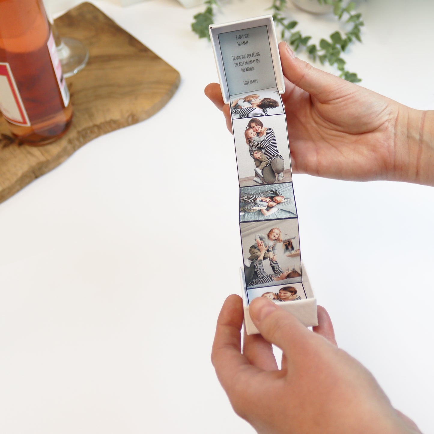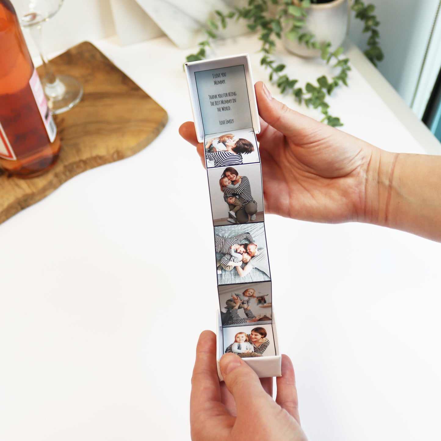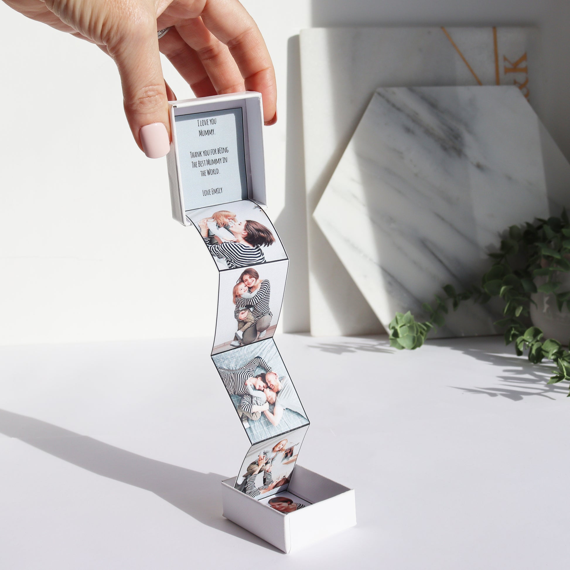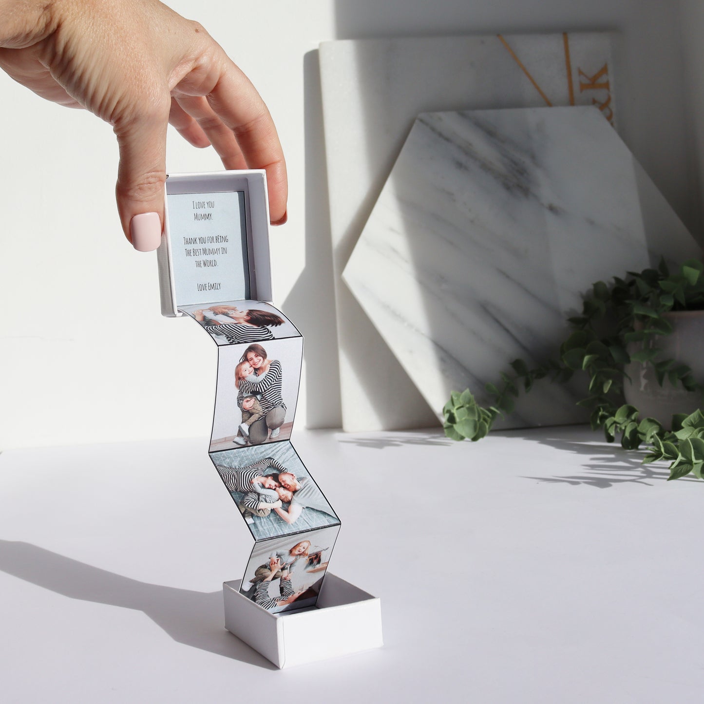 A beautiful way to display photos in this lovely little memory pop out photo box, it makes a special personalised gift to share your favourite memories. Each photo is folded into this fun token style photo box.