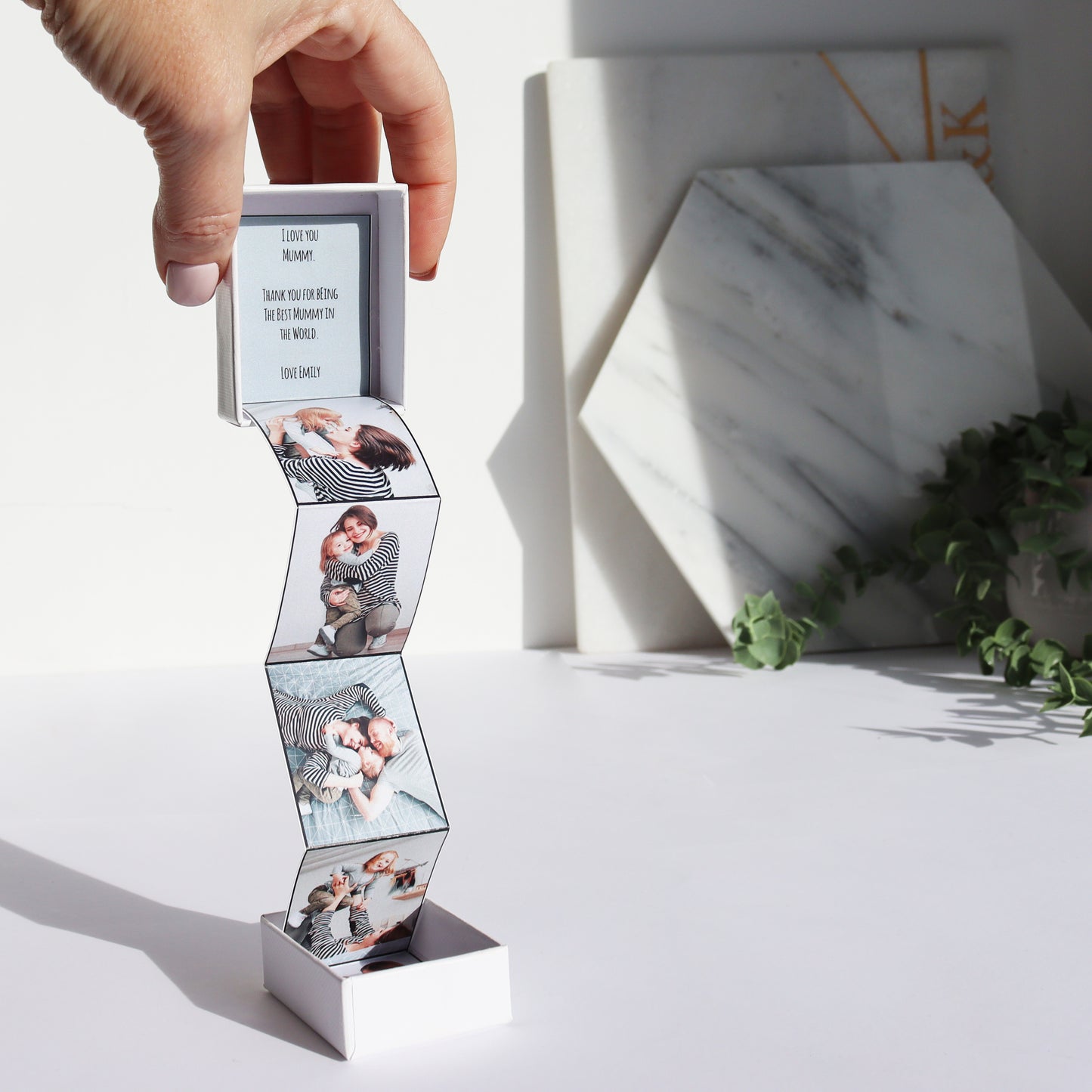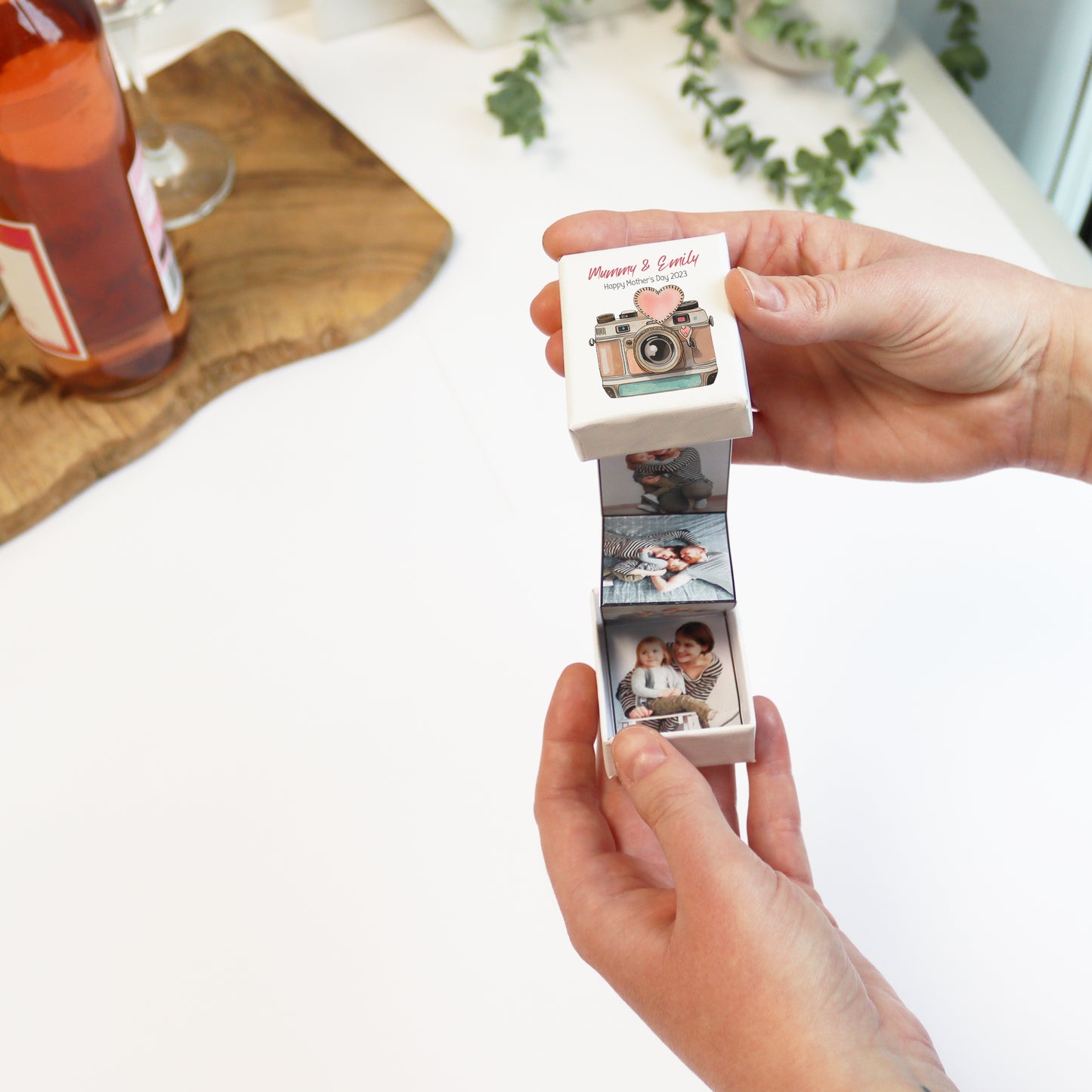 Beautiful, handmade, personalised pop out, photo album box. The perfect gift for Mother’s Day, Father's Day or other special occasions.