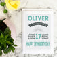 Is it an 18th, 21st, 50th? You can change the dates and time accordingly. This personalised birthday card can be amended to add the persons place, date and time of birth, along with the name of the hospital they were born in (or place). The card is beautifully personalised and printed allowing the card to be framed after as a keepsake.