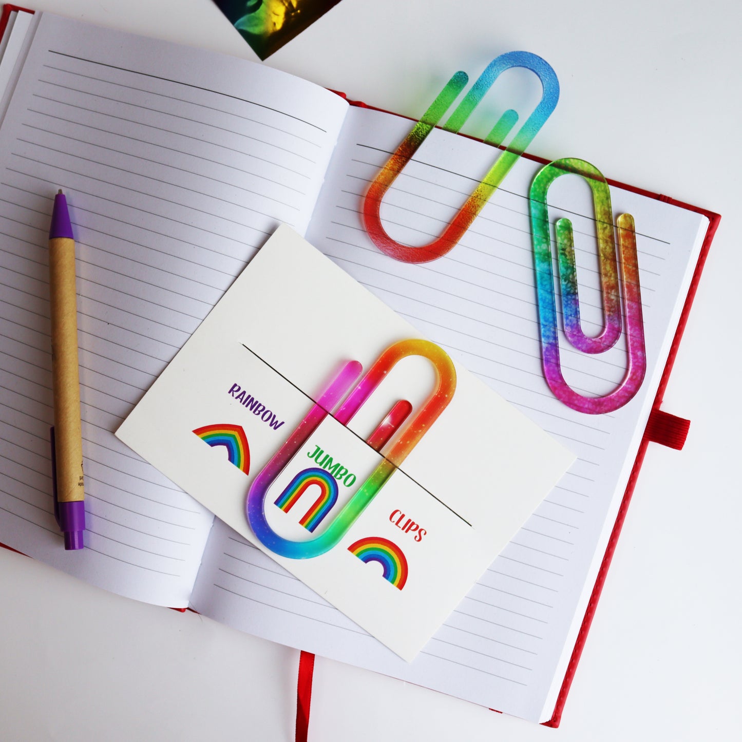 This set of three rainbow handmade, chunky acrylic jumbo paperclip set is just the ticket for an unsual gift this year!