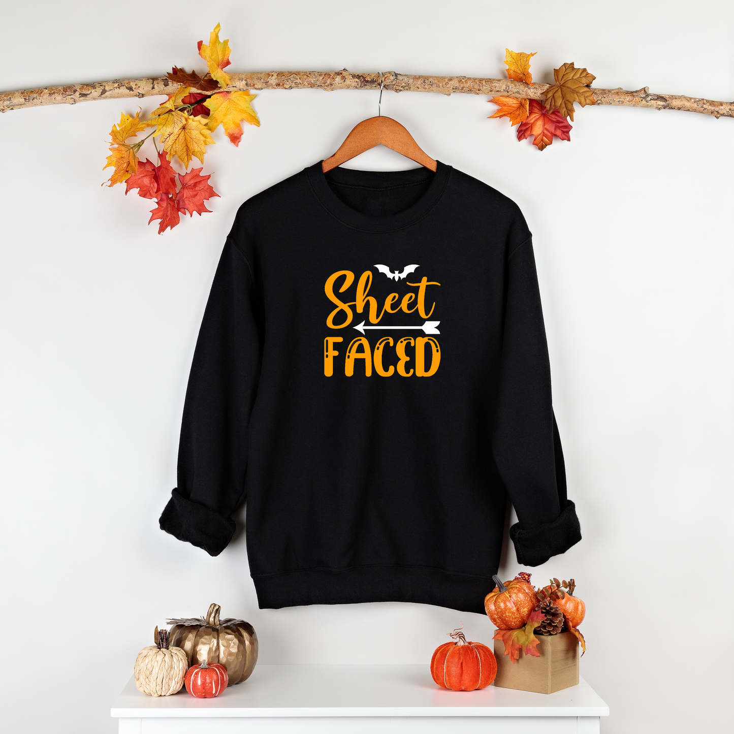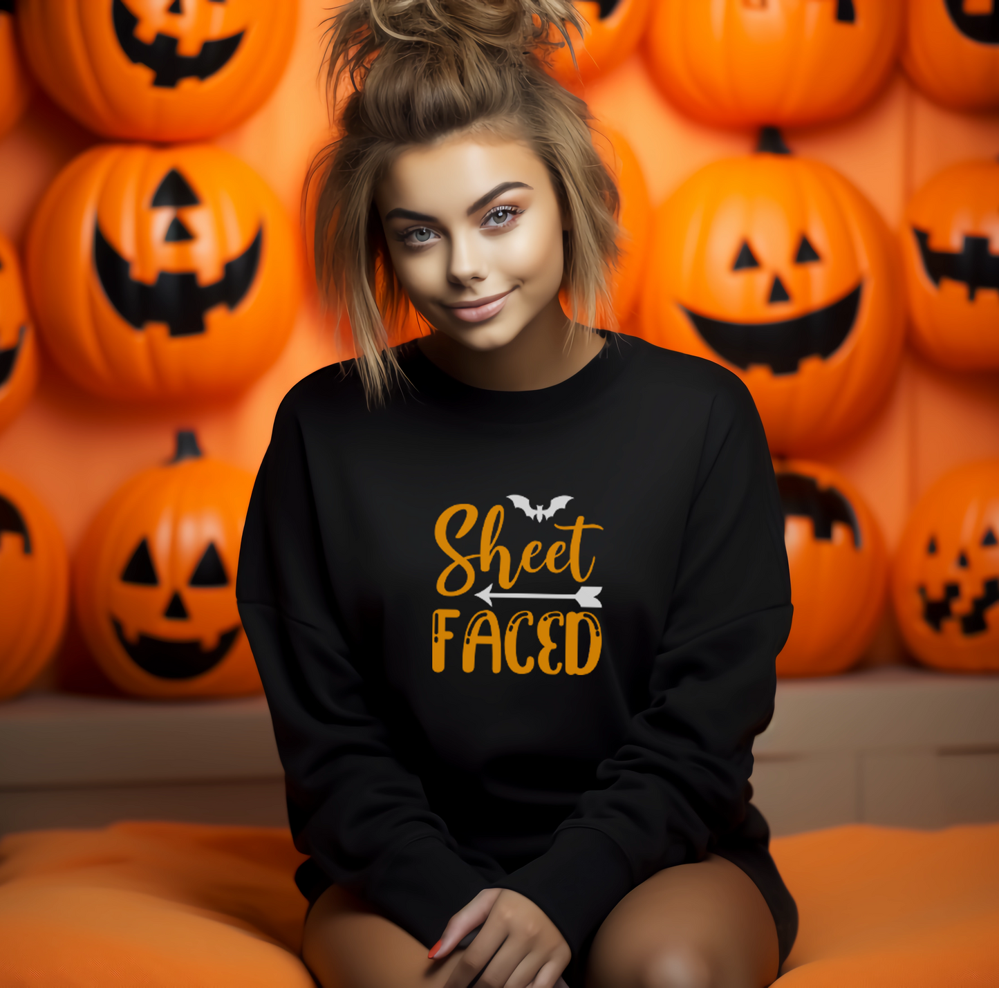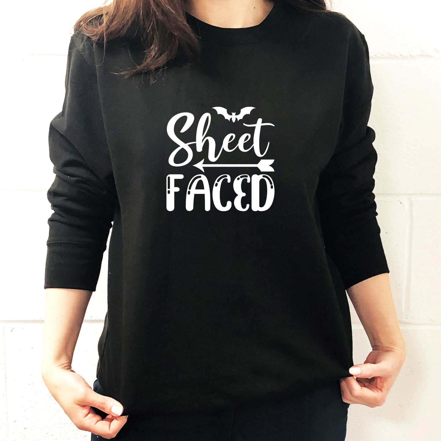 Get into the Halloween spirit with our "Sheet Faced" sweatshirt! Crafted for both comfort and style, this black sweatshirt is perfect for Halloween enthusiasts. Whether you're going to a spooky soirée or simply trick-or-treating, our sweatshirt has you covered in the most fashionable way.