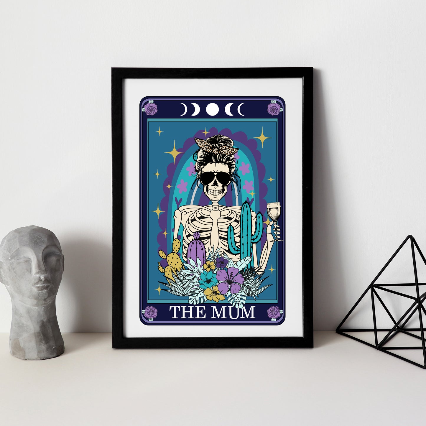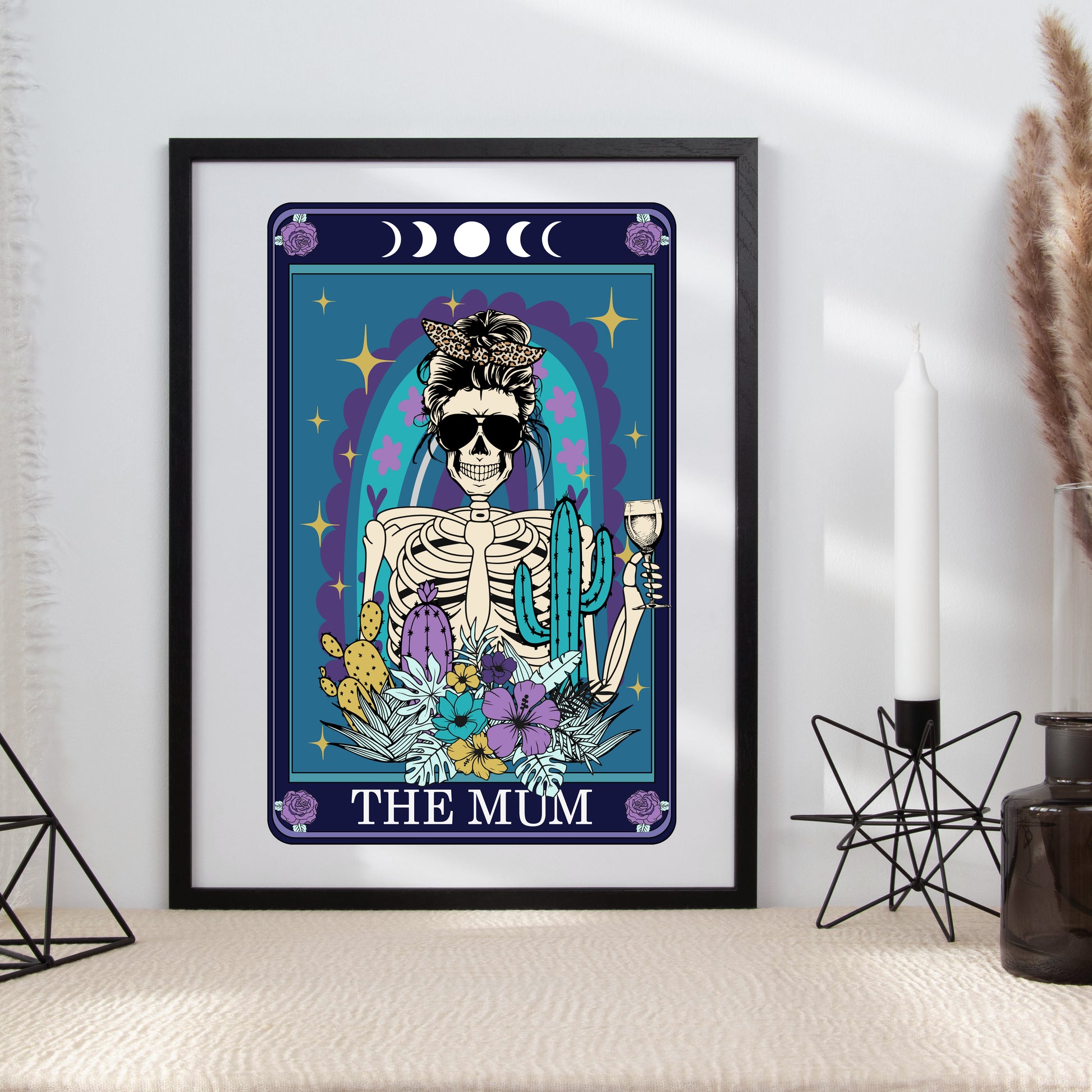 We love, love, love this unusual, fun typographical tarot wine Mum skeleton print.