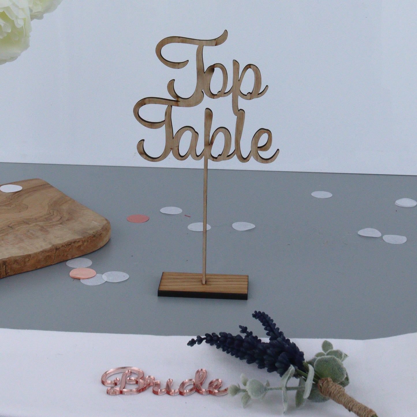 Beautifully cut wooden table numbers for wedding centrepieces. These are cut from 6mm oak veneered mdf, much better quality and feel than most made from ply wood. These are stunning in floral displays or in the stand on your wedding table and match perfectly with our laser cut wooden place name settings. These are beautiful for a rustic or modern themed wedding.